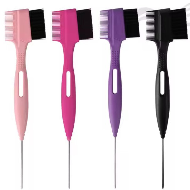 Crafted for control, comfort, and versatility, each brush head combines nylon bristles for smooth styling with fine and dense comb teeth to tame and perfect every strand. The PP anti-slip handle gives you a secure grip, while the stainless-steel round pin tail makes parting, sectioning, and detailing effortless.